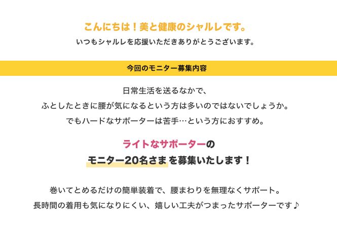 今回はこのライトなサポーターのモニター20名さまを募集いたします。