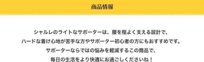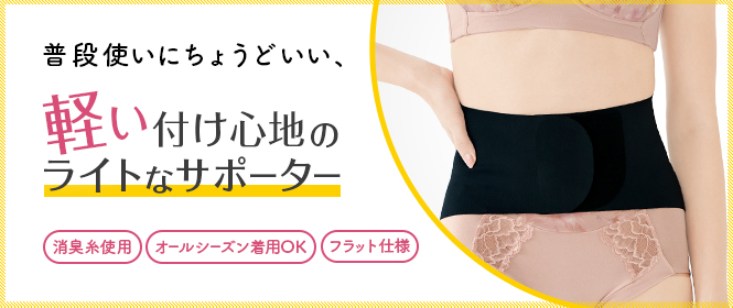 腰を程よく支える設計の「ライトなサポーター」は、肌あたりにこだわった素材で長時間の着用も気になりにくい仕様。