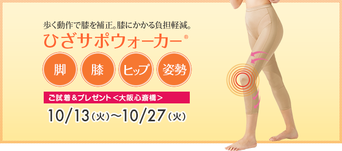 大阪 心斎橋で、シャルレの膝サポートボトム「ひざサポウォーカー」のご試着モニターさんを募集いたします。あわせて人気サービスの、体組成チェック、肌チェックも体験してみてくださいね♪