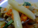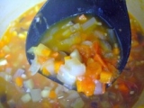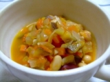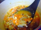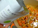 タマネギ・キャベツ・人参・かぼちゃの4種類の野菜だけで作りました。このスープは、動物性たんぱく質の摂り過ぎなどによって、体の中にたまった硬脂肪を排出させる役割があると言われています。内臓にやさしく働きかけ、体内のバランスを整える働きがあります。美容や健康のためにいただくのはもちろん、野菜ブイヨンとしても。