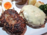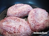 CHICKENNAKATAのジューシーハンバーグのモニターに選ばれました牛100%!150gのハンバーグ3個です冷凍の真空パックで届きました大きいので3個でフライパンにいっぱいに!!片面弱火で8分,もう片面中火で3分,フタをして弱火でハンバーグの内面から透明の脂が出てくるまでタイマーでセッ… 2011/10/27