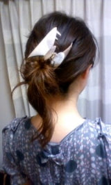とても可愛いヘアクリップの応募です 私もよく後髪を、クリップで留めたりしているので使ってみたいなと思いました^^ 髪の量が多いのでショートでありますが、ゴムでまとめて上からクリップで押さえるといった感じの ヘアスタイルはやっています ハーフアップという感じでしょうか♪ イタリ… 2010/06/06