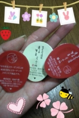 モニプラさんでいただいたコラーゲンポーションに入っている、かわいいやつです当初は10個入りのはずだったんですが、長寿の里さんのご好意でなんと30個入りが届きました♪めちゃめちゃうれし手持ちの化粧水をかけて溶かして使うゼリー状のものでも入っているのかと思ったら、なんと!綿??でした^^… 2010/01/12