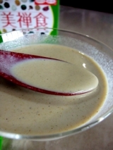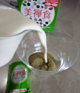 「美禅食」はそのままでも、おやつとしてお召し上がりいただけますが、牛乳、豆乳、お水、お湯に溶かすと、さらにおいしく召し上がれます。