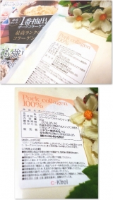 先日、この様な物をお試しする機会に恵まれましたので今日はその商品を紹介させて頂きますね(^_^;最早新パターンは無理ですと自分で思い始めています)本日紹介するのは↓ 「ポークコラーゲン」です 中身はこんな感じ… 2012/10/25