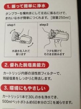 家の水道に取り付けるタイプは よくTVやショップで見かけてました でも、携帯型は初です!! 俺が知らなかっただけ??www 水が一番身体にはいいので ミネラルウォーターを買ったりしますが これだと 水道水を入れておけば 持ち歩けるのでエコにもなるwww ぜひ、試してみたいっておもったら 下を… 2012/09/16