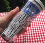 ≪クリンスイ タンブラー≫は、容量250mlのタンブラー型浄水器で、浄水カートリッジには粒状活性炭を採用。本体のフタをあけ水道水を注ぎ、振ることで残留塩素を除去します。カートリッジは1個で約30リットルの浄水が可能で、1日に1リットル使用するとして、約1ヶ月間使用できます。