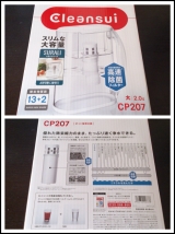 クリンスイCP207お手軽な浄水器ですクリンスイCP207は、浄水部容量2.0リットルで、浄水部容量の アップと高い収納性の両立をコンセプトに開発したポット型浄 水器の新シリーズ「SURALI(スラリ)シリーズ」です大容量でも冷蔵庫のドアポケットへの収納が可能で、浄水を料理にたっぷり使いたい方にお… 2014/04/13