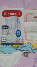 【母の日企画】母に感謝の気持ちを込めて!クリンスイCP025をプレゼントに応募し見事当選しました早速開けてみると…可愛いラッピングラッピングを取ると…クリンスイCP025の箱がドーンと箱から現物を出して、説明書通りにセットしてみましたいつもは煮沸したお水を飲んでたけど、これは水を入れるだけでき… 2014/05/14