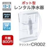 《クリンスイCR002》は、浄水部容量2.0リットル。浄水部容量のアップと高い収納性の両立をコンセプトに開発したアルカリポット型浄水器です。大容量でも冷蔵庫のドアポケットへの収納が可能で、 浄水されたアルカリ水を料理にもたっぷり使いたい方におすすめの浄水器です。