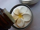 カンカンポマンダーに精油を1~2滴たらします。香りを変えたいときは、ポマンダーを水洗いしてください。