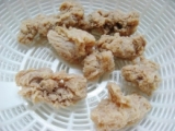 インジェンスのここからcomから 大豆ミート 鶏モモタイプをいただきました 畑のお肉と呼ばれる、栄養たっぷりの 大豆の栄養を摂れる大豆ミート 食物繊維が含まれ、 タンパク質やイソフラボンも豊富だそうです 鶏モモタイプはボール状で、 煮物や揚げ物に合います 1分ほど茹でて、お湯を切る… 2011/07/20