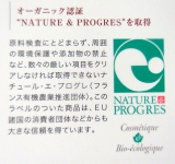 ナチュール・エ・プログレからの認証を得るには、原料についての検査だけではなく、周囲の環境保護など、数々の厳しい項目をクリアしなければなりません。このラベルのついた商品は、EU諸国の消費者団体などからも大きな信頼を得ています。(認証マークを付与されているオーガニックコスメは世界で20社のみ。)