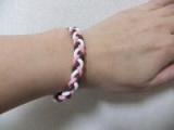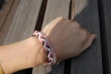 男性でもオシャレに着けられるような色合いにしたかったんです。ちょっと落ち着いたイメージのファッションに手首からチラっと見えるピンクのアクセは『うわ!カッコイイこの人!』って思われちゃうかも♪