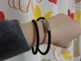 導電繊維ってご存知ですか?銅を使った特殊な繊維なんですけどね。静電気が起こるとトラブルが生じてしまうほどの精密機械等を保護する為に使われている繊維があるんです。コレを応用してカッコイイアクセに出来たらバチっとしなくなるんじゃないか?と考えたのがコランコラン『エスガード』です。