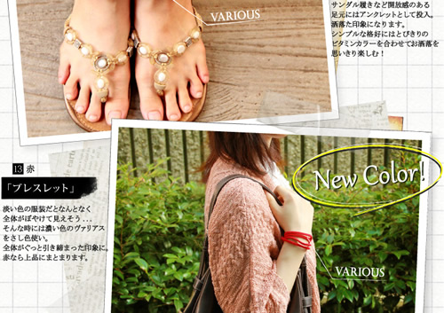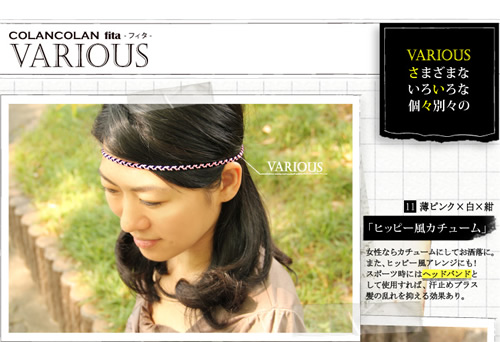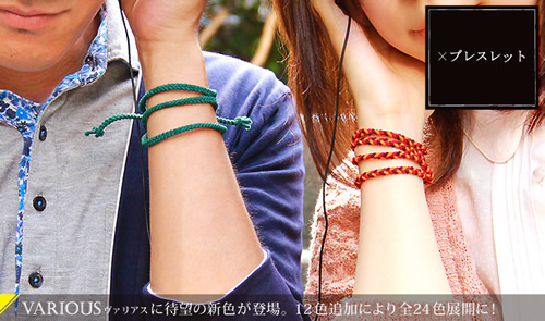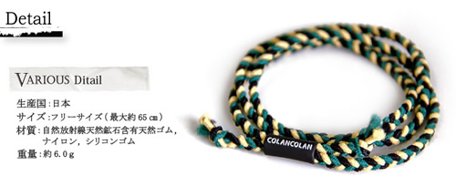 コランコランにしか無い新しい健康アクセサリー!!どこにでも巻いて使う『ヴァリアス』はチェックした? もう本当に凄くオシャレで普通のアクセサリーにしか見えないんだけどシッカリ健康アクセサリーなのがいいんです。 例えば、今日は肩がシンドイからリラックスさせたい時は首に着ければいいし!久しぶりの立ち仕事で足が筋肉痛に なってしまった場合は、足に巻き着けて使える!さらに!髪が長い人はオシャレカチュームとしても使えるんです!! 1本で様々な使い方が出来るのが『ヴァリアス』の最大の利点です。普段は手首に3重巻きにつけておくと凄くカッコイイ! ヴァリアスの素材は天然鉱石を練り込んだシリコンゴムで出来ています。商品からは半永久的に大量のマイナスイオンを 放出し続けます。オシャレにマイナスイオンでリラックスできます。また水に着けてもすぐ乾く素材なので汚れたら水で ジャブジャブしてOKです。普段使いのオシャレアクセとして人気ですよ♪ http://www.colancolan.com/fs/ippin/various サイズ調整が出来るのでフリーサイズです。カラーは全部で24カラーご