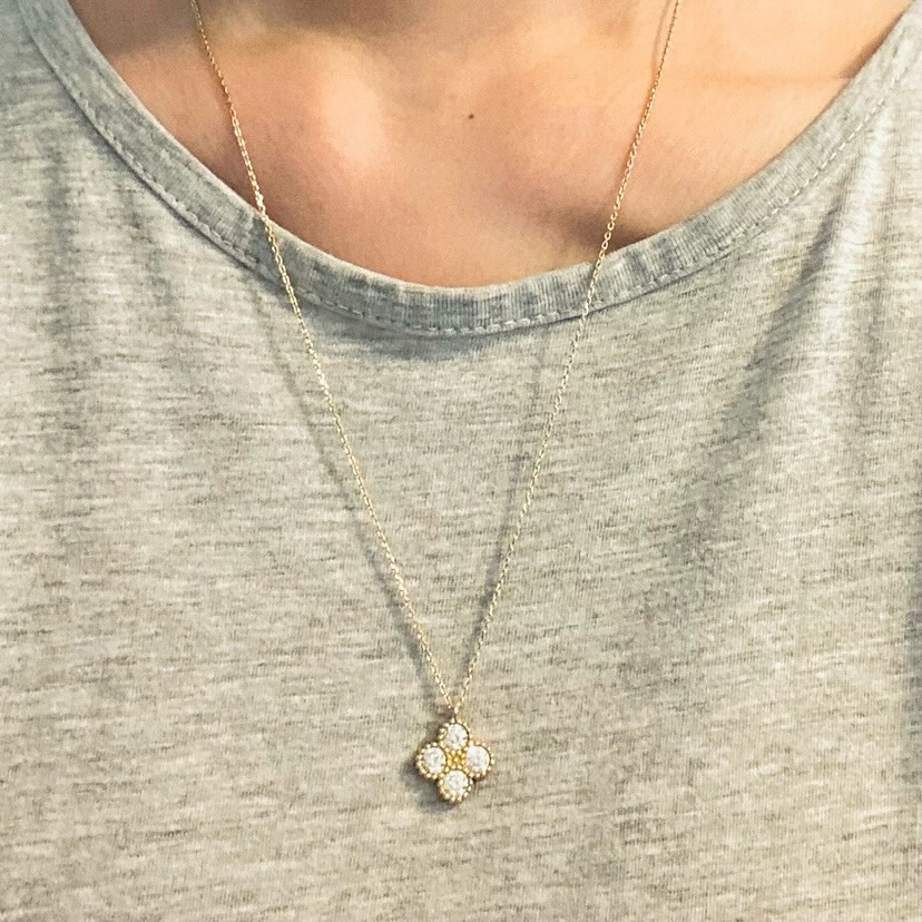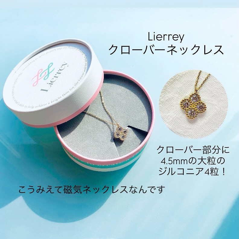 コラントッテの女性ブランドLierreyのクローバーデザインの素敵なネックレス Lierreyクローバーネックレス ラッキーモチーフとして親しまれているクローバーデザイン。 キラキラとクローバー部分に4.5mmの大粒ジルコニア4粒ついていて素敵。 磁気ネックレスといえばあまりオシャレなイメージはありませんでしたが、ゆったりとしたチェーンで使いやすく可愛らしいけど華やかすぎない落ち着くクローバーデザインが嬉しい。 首回りに150ミリテスラの希土類永久磁石×8個を コラントッテ独自のN極S極交互配列で配置。 磁気の力で血行をよくし続け、日々の首コリや肩コリにアプローチ。 @lierrey_official #PR #colantotte #Lierrey #リエリィ #マグネライフセラピー #こう見えて血流コーデ #セルフケア #血流改善 #monipla #colantotte_fan