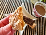 フレッシュバターをたっぷり使用した生地を幾層にも重ね、一枚一枚丁寧に焼き上げました。アーモンド、プレーン、チョコレート3種類の味わいとサクっとした食感をお楽しみください。