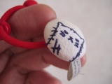 すぽんじニャーコのくるみボタンは、布の風合いがやさしい素朴なデザイン。