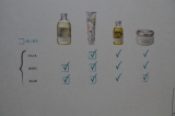 | レモン、ベルガモット、 マンダリン、ユーカリ | ゼラニウム、 シダーウッド | ローズ、ネロリ、 オレンジブロッサム |