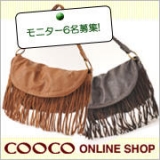 モニタープラザ 様よりcooco(クーコ) 発売前の新作フリンジショルダーが当選しました♪ 9/15(火)よりオンラインショップで発売されている新商品です まさか当たるとは思ってなかったので、当選の知らせを聞いて、商品が届くまでは、ドキドキでした 色はブラウンとキャメルがあるの… 2009/09/17
