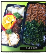 2色ごはん(辛味噌そぼろほうれん草)鱈としめじのバター焼ブロッコリーカップ卵焼きミートボールロールキャベツそぼろは作っておくと、何かと使える卵焼きには野菜ブイヨンをいれてみましたいい感じに味がついたよーショップcorcorファンサイト参加中 2012/04/26