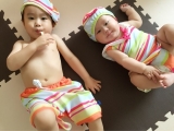 お揃い服といえばCorvaさん今回は可愛い水着をお揃いにしちゃいました夏らしいビタミンカラーの可愛い水着るいが着てるのは女の子用でリボンが付いてます赤ちゃんの水着に丸帽子がたまりませんこのピンクのリボンがポイントになっててめちゃめちゃ可愛いです男の子用の水着も同じカラーでとっても可愛いんです男の子… 2015/06/21