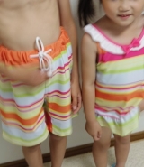 おでかけおそろい服の子供服を展開しているCorva様より(コルヴァ)男の子 女の子のおそろい水着をモニターさせていただきましたオレンジ×ピンク色がとても可愛いマルチボーダー柄です帽子もおそろいです今まで店頭におそろいの水着って見かけたことがなかったのですごく新鮮で親としては憧れるスタイルですプールや… 2015/06/22