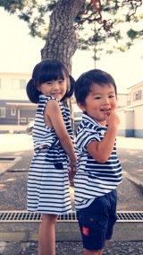 5歳と2歳の姉弟‼️ この夏こそ おそろいしてみたいな(≧∇≦) 【最終イベント】おそろいマリン「シャツ」+「ワンピース」を10名様にプレゼント♪ 2015/07/23