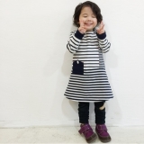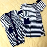 春の新作二人目ご出産祝いに大活躍、ベビーとキッズのおそろい商品 マリンミックスボーダー/ネイビー 「ロンパース+ワンピース」レッドとネイビーがありどちらも可愛く、上の子が女の子で下の子が男の子なので、ネイビーのおそろい服にしました上の子のワンピースです 身長約100cmで服のサイズは110cm… 2015/03/18