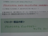 サンヨー コスメハンターさんのプロジェクトに当選させて頂きました 早速モニター品の プラントシステム ミセラークレンジング水を使ってみました 肌にやさしくて、使用後はしっとりやわらかでとても心地良いですね この度は素敵なお品をどうも有り難うございました コスメハンターファンサイト参加中 2014/07/21