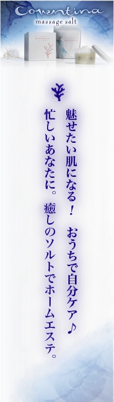 Coventina(コヴェンティーナ)はテレフォニーダイレクトが開発、販売する、特殊な塩を原料としたホームスパ&エステのための化粧品です。