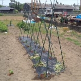夏野菜は乾燥しそうだし雨よけのビニール上手に貼る自信ないしというわけで、躊躇してましたが、 リコピノプラザ さんのトマトコンテストの案 2013/05/15