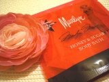 気分は映画女優、{始まりマリリン ハニー&シュガー ボディバス} 毎日のケアではなく、今日は!!というとっておきの日に使用する 贅沢な自分磨きのためのアイテムです 大粒のシュガーとミルクピンク色に色づく細かいパウダーの 2剤式バスシュガー ハチミツやローズ油等保湿成分高配合の入浴用美容液で お湯… 2010/11/21