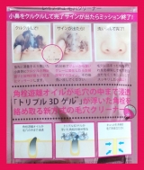 毛穴に詰まった皮脂汚れと角栓に馴染みやすい「角栓遊離オイル」が毛穴の中まで浸透して、「トリプル3Dゲル」が浮き上がった角栓をお掃除ロボットのように絡めとり、引き締め成分「ハマメリスエキス」と保湿成分「水溶性コラーゲン」と「加水分解コラーゲン」を配合し、毛穴のお掃除とケアが同時に出来る、新方式の毛穴クリーナーです。