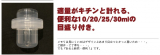 計量キャップは10ml、15ml、25ml、30mlの目盛り付きなので