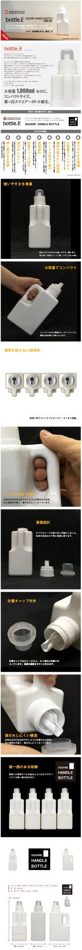 最近インスタで見せる収納ボトルをよく見かけます。どれも素敵な投稿ばかりなので、羨ましい。 調味料は100円ショップで購入した同じようなクリアボトルに入れて収納していますが、洗剤はまだ手つかずの状態なので、ぜひわたしも綺麗に収納したい!と思って応募しました。 使ったことがない洗剤など買う時にいつも本品を買うのが勿体ないなーと思いつつも収納するものもないので、買いますが、統一感はなくなります。色や柄はバラバラなのでね・・・。 そうゆうときに統一感のある素敵なボトルに入れたらどんなにいいのやらと思っていましたが。 詰め替えるだけでなく、使用感もお伝えできたらいいなと思います!ブログやインスタで紹介します。 【30名モニター募集】Instagram限定!詰替え・見せる収納ボトル【角型】 bottle.E[クレス・オリジナルボトル]今まで世の中に、ありそうで無かった洗剤用の詰め替えボトル。様々な場面で活躍出来る様、使いやすさを考慮したシンプル設計。ではさっそくボトルの概要をご案内させて頂きます!持ち手(ハンドル)付きで、とても使いやすい大容量の詰め替えボトルです。無駄な凸凹が無いシンプルなフォルムなので洗剤、柔軟剤等を「カッコよく見せる収納」できます。家庭のランドリーとサニタリールームをよりファッショナブルに収納してください!別売りの専用ラベルを貼ると分かりやすく、ベストな統一感が出せます。注ぎ口は注ぎやすいよう程よくダイヤ型細口になっています。また液切れが良く、液だれしにくくなっています。計量キャップは10ml、15ml、25ml、30mlの目盛り付きなのでお使いの洗剤、柔軟剤の適量をキチンと計れます。