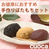 cuoca さんの お彼岸にいかがですか?おいしいぼたもち(おはぎ)手作りセットモニター に応募させていただきます 昔ながらの定番和菓子、ぼたもち(おはぎ) 春のお彼岸に食べるものを、「牡丹(ぼたん)」の花の名前から「ぼたもち」と呼び、 秋のお彼岸に食べる… 2010/08/25