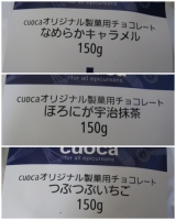 クオカ様、いつもお世話になっております^^ この度は『cuocaオリジナル製菓用チョコレート』を送っていただきありがとうございました=^_^= 「つぶつぶいちごほろにが抹茶なめらかキャラメル」 チョコチップは我が家の定番、でもこちらは初体験♪ 中身はこんな感じ … 2009/12/09