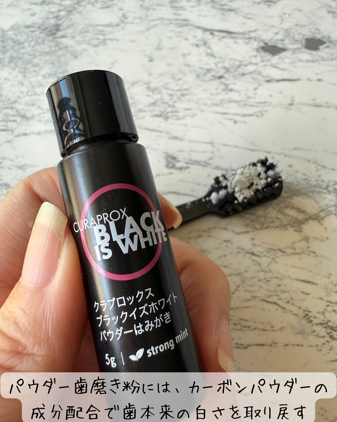 \歯本来の白さを取り戻せ!/ クラプロックス(@curaproxjapan )のブラックイズホワイト歯ブラシと新製品パウダーはみがきがセットになったものを使用しました🦷🪥🖤 スタイリッシュなデザインがカッコよく、磨き心地も抜群✨ 歯ブラシは8角形のハンドルで磨きやすく、柔らかく弾力のあるブラシ✨通常の歯ブラシの2〜10倍毛が植毛されているから歯と歯肉に優しく磨き上げてくれる🙆♀️ パウダー歯磨きは、汚れ、黄ばみ、歯石、歯垢の沈着を防ぎ、歯本来の白さを取り戻すカーボン入りホワイトニングパウダー🦷ストロングミントフレーバーで清涼感があり、口臭対策も✨ スタイリッシュなデザインと磨き心地の良さで毎日使いたい歯ブラシセットだよ✨ #PR #株式会社クラデンジャパン #クラプロックス #パウダーはみがき #ブラックイズホワイト #ホワイトニング #monipla #curaprox_fan