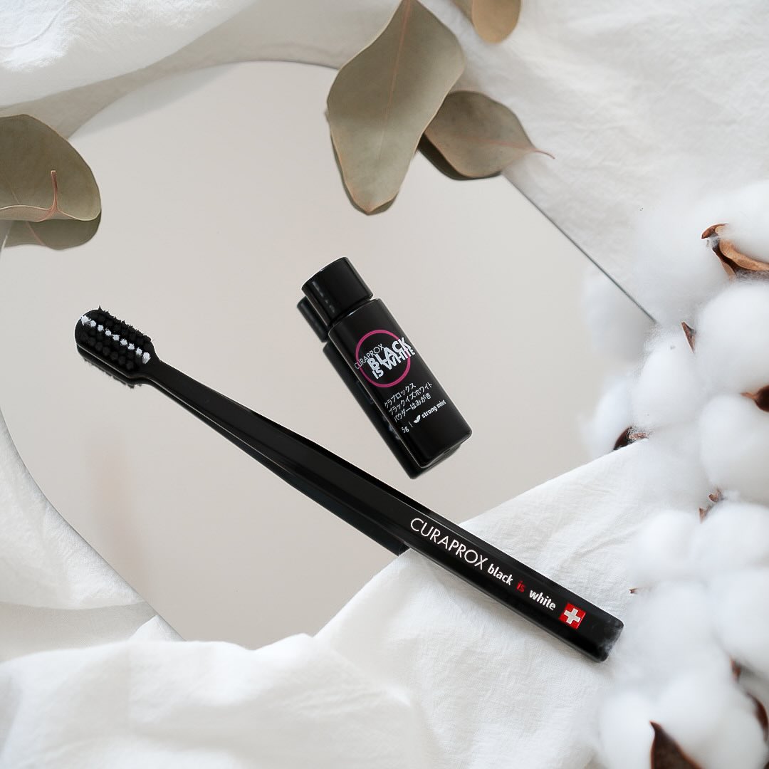 . 毎日のケアに、ちょっと特別なアイテムを🪥🖤 「クラプロックス ブラックイズホワイト」は スタイリッシュな黒の歯ブラシと 新作パウダーはみがきのセット✨ 炭(カーボン)配合の歯ブラシは やさしい磨き心地で汚れや黄ばみ、 歯石・歯垢の沈着を防いで 歯本来の白さへ導いてくれるそう🤍 さらに5gのパウダーはみがきは 見た目も香りも気分が上がるポイント🌿 機能性はもちろん、デザインも楽しめるから 歯みがきの時間がちょっと楽しくなるセットです🫧 旅行やお試し用にもぴったり! モノトーン好きさんにもおすすめです🖤 . #PR #株式会社クラデンジャパン #クラプロックス #パウダーはみがき #ブラックイズホワイト #ホワイトニング #monipla #curaprox_fan