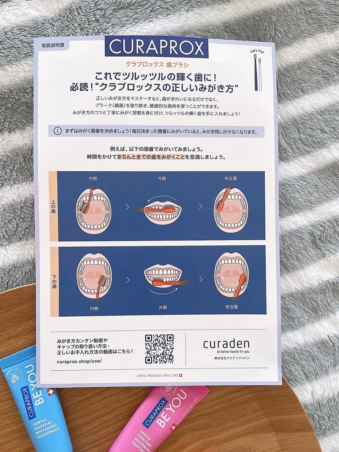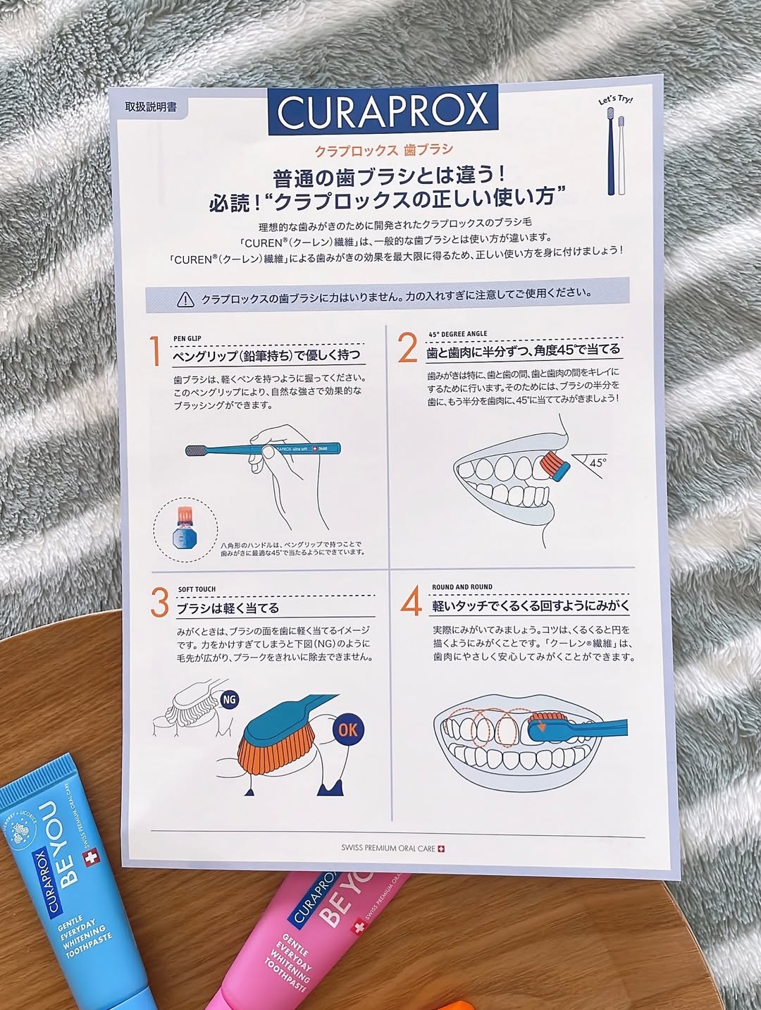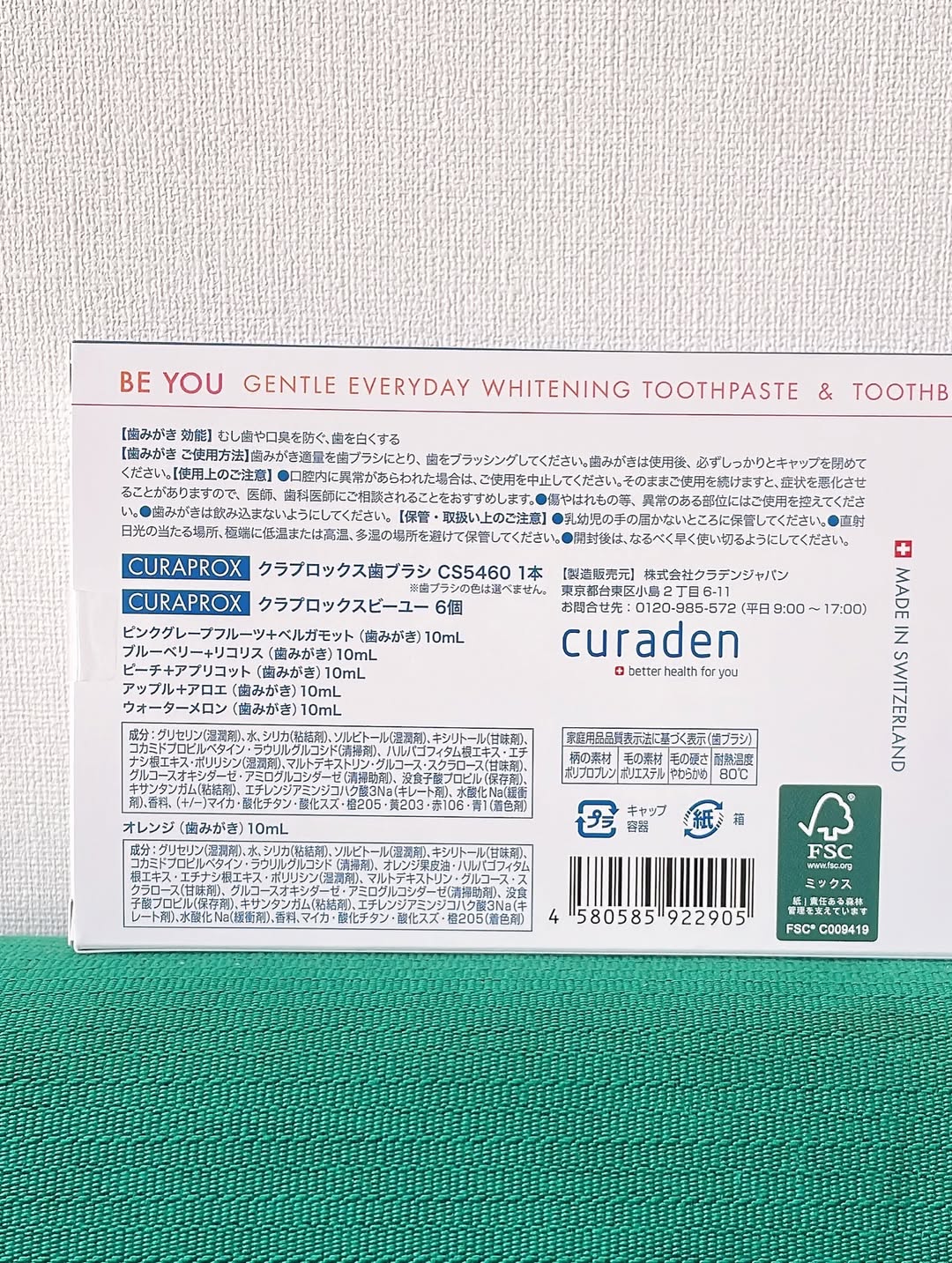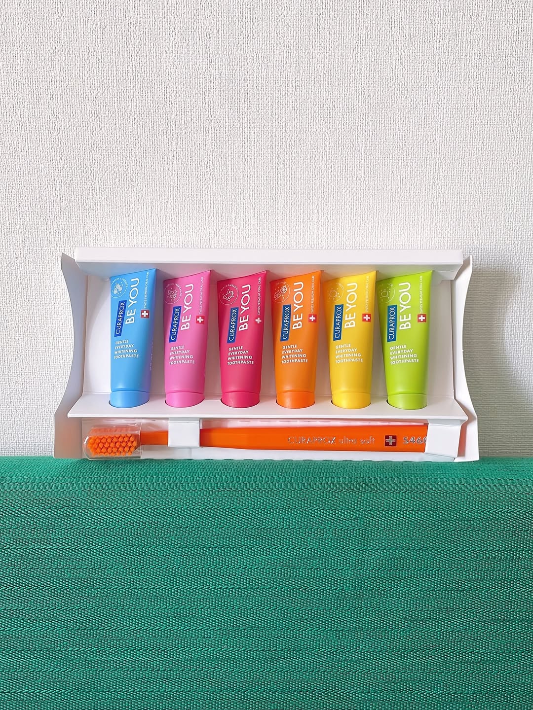 ❤︎Life❤︎ お口のケアもポップで楽しくないと♪ スイス発🇨🇭プレミアム歯ブラシ クラプロックスビーユー 🦷🪥 歯ブラシ+歯みがきボックスセット🫶 ■フレーバー ・ブルーベリー+リコリス ・ピンクグレープフルーツ+ベルガモット ・ウォーターメロン ・オレンジ ・ピーチ+アプリコット ・アップル+アロエ 天然植物エキス配合🪴ラメ入りペーストに歯ブラシは5460本超極細毛、クーレン繊維を使用していて歯の隙間に優しく気持ち良く寄り添ってくれるので磨き心地が良き♡ その日の気分でフレーバーを変えてウキウキ。 発泡剤味配合だからアワアワにならず😊 持ち運びにも便利、お仕事にも携帯しています♡ 旅行にも持って行こう✈️ #PR #株式会社クラデンジャパン #クラプロックス使ってみた #beyou #cs5460 #monipla #curaprox_fan