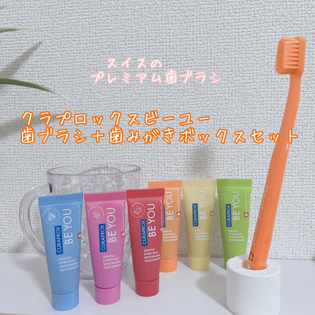 スイスのプレミアム歯ブラシ クラプロックスビーユー 歯ブラシ+歯みがきボックスセットを使ってみました。 スイス生まれの歯ブラシで全世界90カ国で販売されているそうなんです。カラーも種類も豊富で、クセになる磨き心地が特徴です。 歯みがきもカラフルで、6つのフルーツミックスペーストはどれがいいか悩んじゃうかなって思いますがボックスセットは6種類全部入っているコンプリートボックスなんです。 日本の歯みがきと比べると色にドキッとしちゃいますが、発泡成分でもあるSLS(ラウリル硫酸ナトリウム)やフッ素化合物を含まずナチュラル成分が使われてるそうです。キラキラしているのは、歯をキレイにコーティングする光沢材(ラメ)です。 ミニサイズなので、その日の気分で自由に選べるのも楽しいですよね。 歯ブラシは超極細毛がぎゅっと詰まっているので、ソフトな磨き心地で、歯ぐきにもやさしく歯はツルッツルな仕上がりなんですよね。 家族もお気に入りで、ここ最近はずっとクラプロックスです。なんだかクセになる使い心地なんですよね。 普通の歯ブラシと違うところは、ペングリップ(鉛筆持ち)でやさしく持ち、軽く当てて軽いタッチで磨くこと。慣れると簡単ですよ。 もう一つのポイントは、歯と歯肉に半分ずつ、角度45°で当てること。歯と歯の間、歯と歯肉の間をきれいに磨きやすいですよ。 ソフトな当たり口とツルッツルになるこの感覚をぜひ味わってほしいです〜。 #PR #株式会社クラデンジャパン #クラプロックス使ってみた #beyou #cs5460 #monipla #curaprox_fan