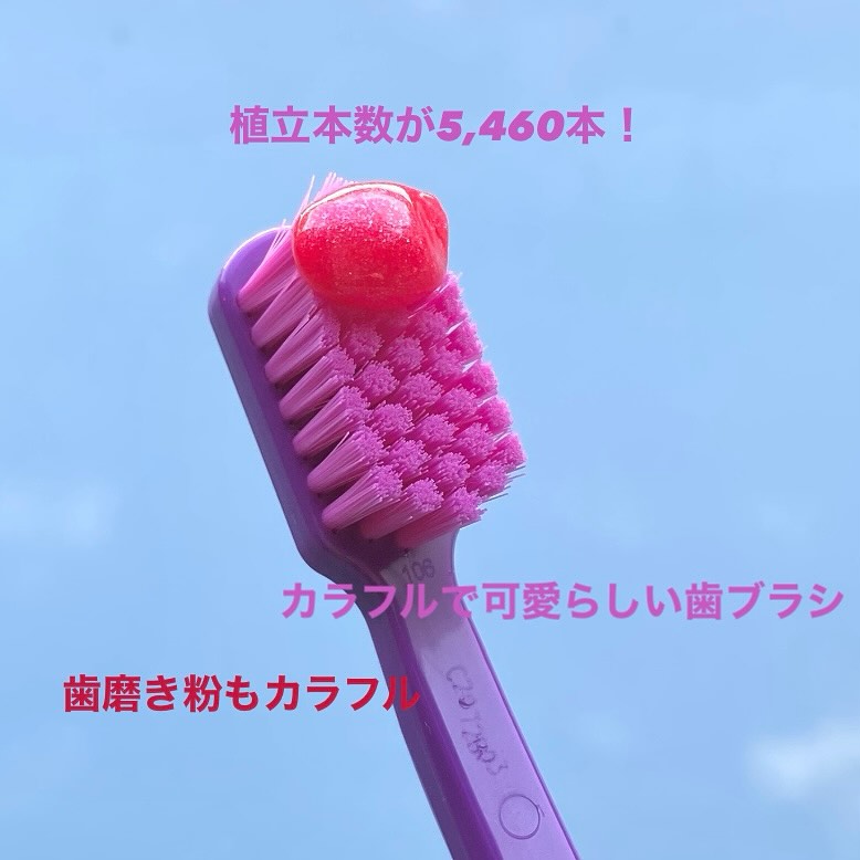 クラプロックスCS5460 CS5460はその名の通り、植立本数が5,460本! 毛束の量が多いのと持ちやすい形も魅力ですが、 見た目もとてもカラフルで可愛らしい歯ブラシなので歯磨きが楽しくなります。 歯ブラシのヘッドは大きめなので少ない動きでブラッシング出来ます。 クラプロックスは歯磨き粉もカラフルなのが販売されていて楽しい。選べるフルーツの歯磨き粉も楽しい。我が家は家族みんな使っています。 #PR #株式会社クラデンジャパン #クラプロックス使ってみた #天使の歯ブラシ #monipla #curaprox_fan