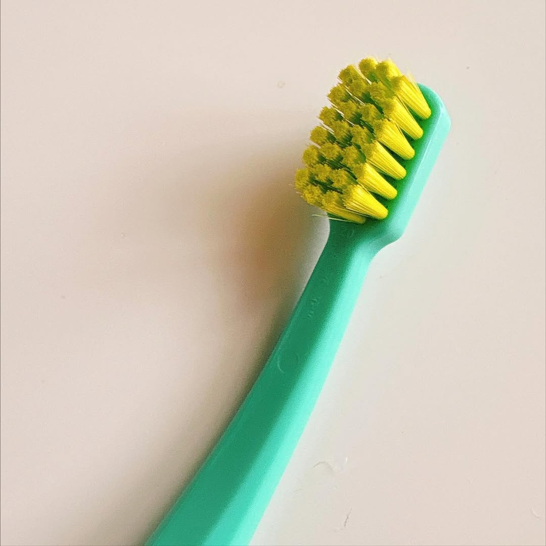 わたしが使っているのはパステルグリーンのハンドルに明るいグリーンの毛で歯みがきタイムが楽しくなります😊