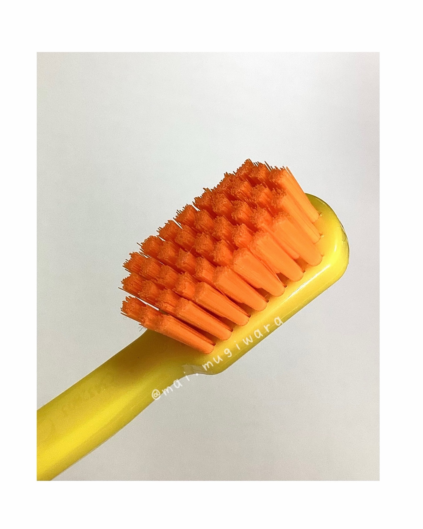 ポップで明るくかわいい黄色のハンドルカラー。他にもピンクや青など数種類のハンドルカラーがあるそうです。八角形のハンドルで握りやすい🪥