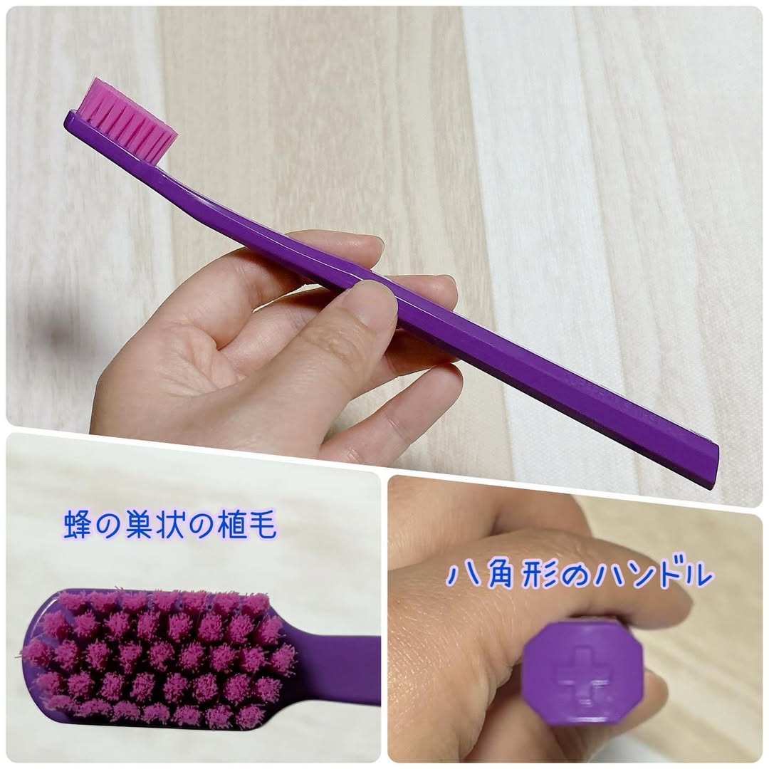 大きめヘッドで高密度かつ蜂の巣状の植毛によりしっかり隙間なく磨ける感じがします。