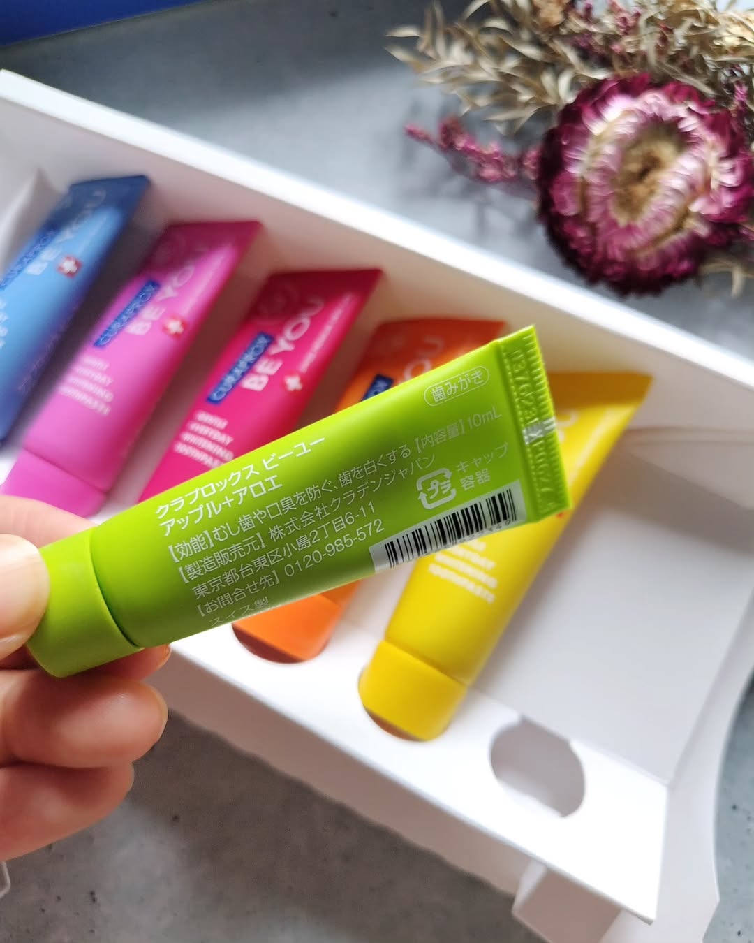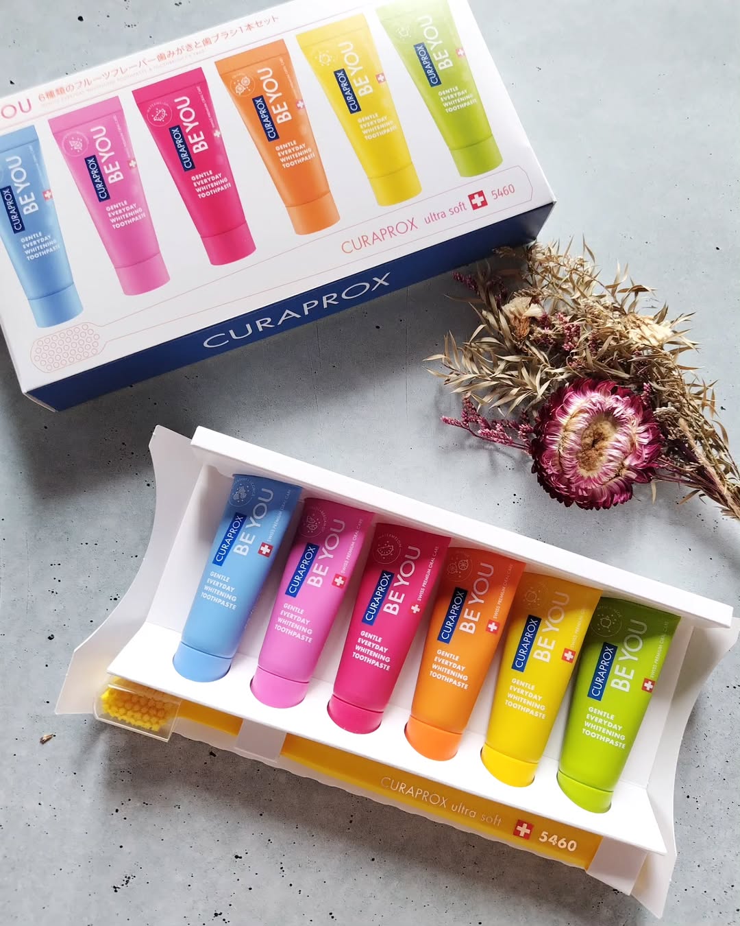全6種類のフレーバーから選べるラメ入りの歯磨剤と、クラプロックスCS5460歯ブラシ1本のセットです。 6つのフルーツミックスペーストで、その時の気分で自由に選べるラインナップ。 今までに体験したことのない、爽やかな香りで心地よい歯みがき体験を!