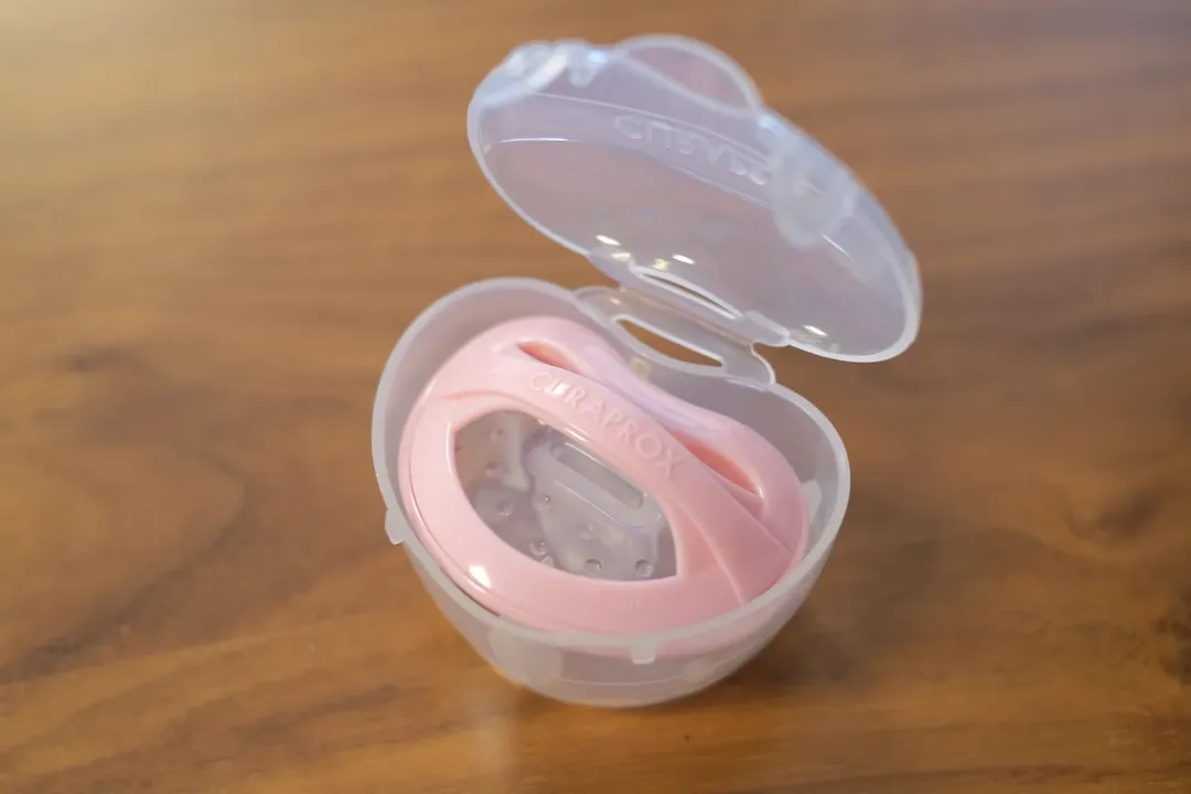 SIZE0:0ヶ月~7ヶ月(体重3Kg~7Kg) SIZE1:7ヶ月~18ヶ月(体重7Kg~10Kg) SIZE2:18ヶ月~36ヶ月(体重10Kg~14Kg) クラプロックスベビーのおしゃぶりのポイント ・赤ちゃんを落ち着かせます ・歯・あごにやさしい設計 ・最適な呼吸運動をサポート 電子レンジ消毒ボックス付:実用的で、クリーニングにも持ち運びにも便利なケース 特徴 ①フラットな乳首は上顎を圧迫しないので、子どもの呼吸や睡眠、集中を妨げません。 ②サイドウイングが子どもの口内成長をサポートします。 ③しなやかなマウスシールドと透明な凹凸が自然な乳房感を演出し、 嚥下や吸い込み動作をサポートします。