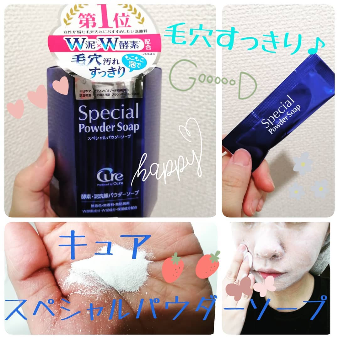 毛穴の悩みにオススメなキュア「スペシャルパウダーソープ」を使ってみました💕泥が吸着し毛穴をスッキリさせてくれる洗顔料です🌟 W酵素とW泥成分(ガスール&ホワイトクレイ)配合によって毛穴の黒ずみ汚れや角栓、ザラつき、くすみを取り去ってくれます🎶おかげで透明感のあるつるすべな肌に洗い🌟私は鼻の黒ずみが気になるのですがこれを一回使っただけでだいぶ目立たなくなりました♥その後の基礎化粧品が馴染みやすくなります🎶香料、着色料、防腐剤 不使用です🌟 毛穴にお悩みの方は是非使ってみてくださいね♥#スペシャルパウダーソープ #cure #キュア #酵素洗顔 #酵素洗顔パウダー #毛穴ケア #毛穴の黒ずみ #monipla #cure_fan